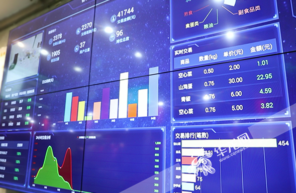 ??數(shù)據(jù)大屏顯示當(dāng)天產(chǎn)品交易量、種類、價格等信息。華龍網(wǎng)-新重慶客戶端記者 謝鵬 攝